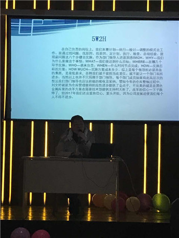朱向華總經理壓軸登場,以企業文化——“引領行業技術革新”為主題進行了發言,健康向上的企業文化是一個企業戰無不勝的動力之源,也是企業綜合實力的體現,是一個企業文明程度的反映,也是知識形態的生產力轉化為物質形態生產力的源泉和動力。所以,朱總積極倡導塑造良好的企業文化氛圍,鼓勵員工用心工作、快樂生活,并對2017